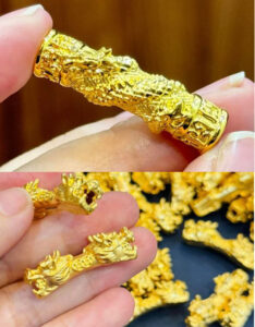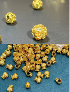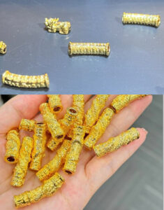 We manufacture our fashion products. They contain real gold parts (charms, pendants, etc..) with the caliber of 18k (sturdier & shiny) or 24k (softer & bright yellow). They are accepted at local pawnshops since the gold is genuine and high quality, from our trusted suppliers. We use both HK and Saudi gold for our genuine products.