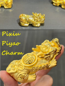 The Pixiu, also known as Piyao, is a mythical creature in Asian culture and Feng Shui. It's unique with a dragon head and lion's body. It has a mouth but no exit point. Thus, the cultural belief of the Piyao being a "money catcher" fortune beast that attracts success, luck, fortune and protects its master's health and wealth. Also it's culturally believed to attract: positive energy, good health, fortune, prosperity and provide protection.