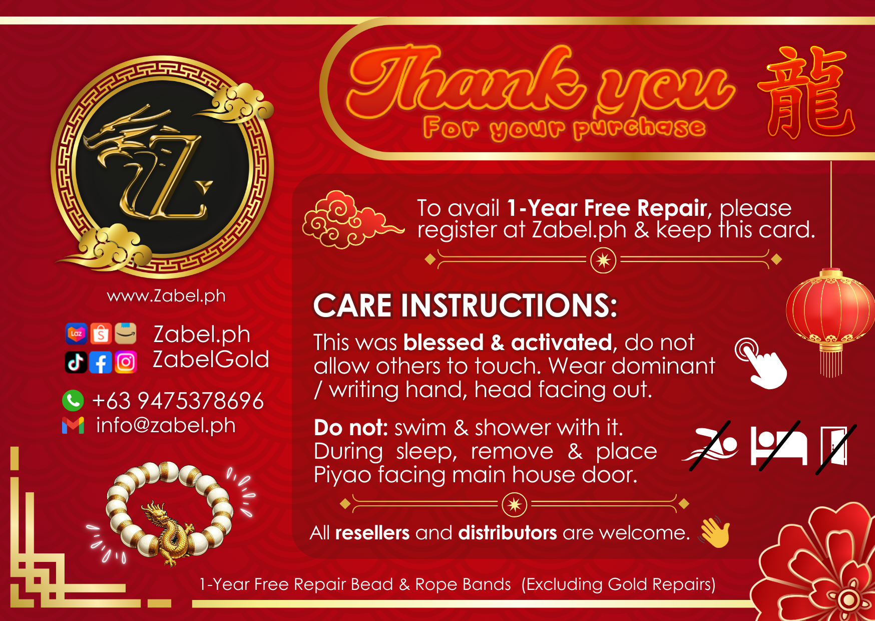 All purchase by registered customers are entitled to a 1 YEAR warranty that includes free repair limited to the following: spacers, bands, linkage, locks, obsidian beads, and onyx beads. Other parts may require additional fees. Trade-in of complete yet broken part(s) not defined in this warranty are credited towards replacement of same or similar part(s), within 1st year if available. Customer is responsible for all shipping cost.